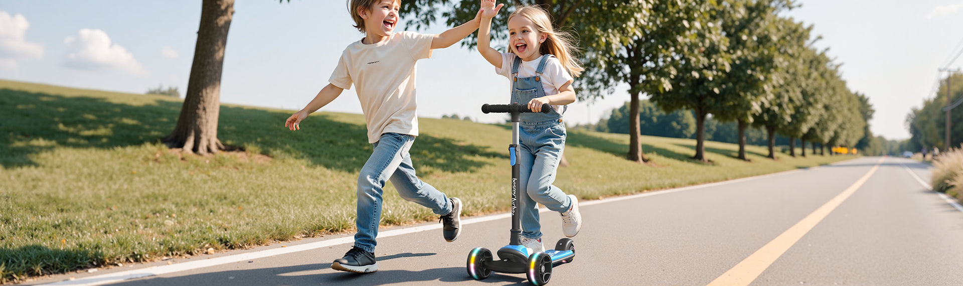 Fun, freedom, and skill-building on wheels — our kids' scooters are designed to spark adventure and encourage active play. From their first push to confident cruising, these scooters help children develop balance, coordination, and motor skills, all while having a blast outdoors. With sturdy builds and safety-first designs, they're the perfect companions for growing riders.