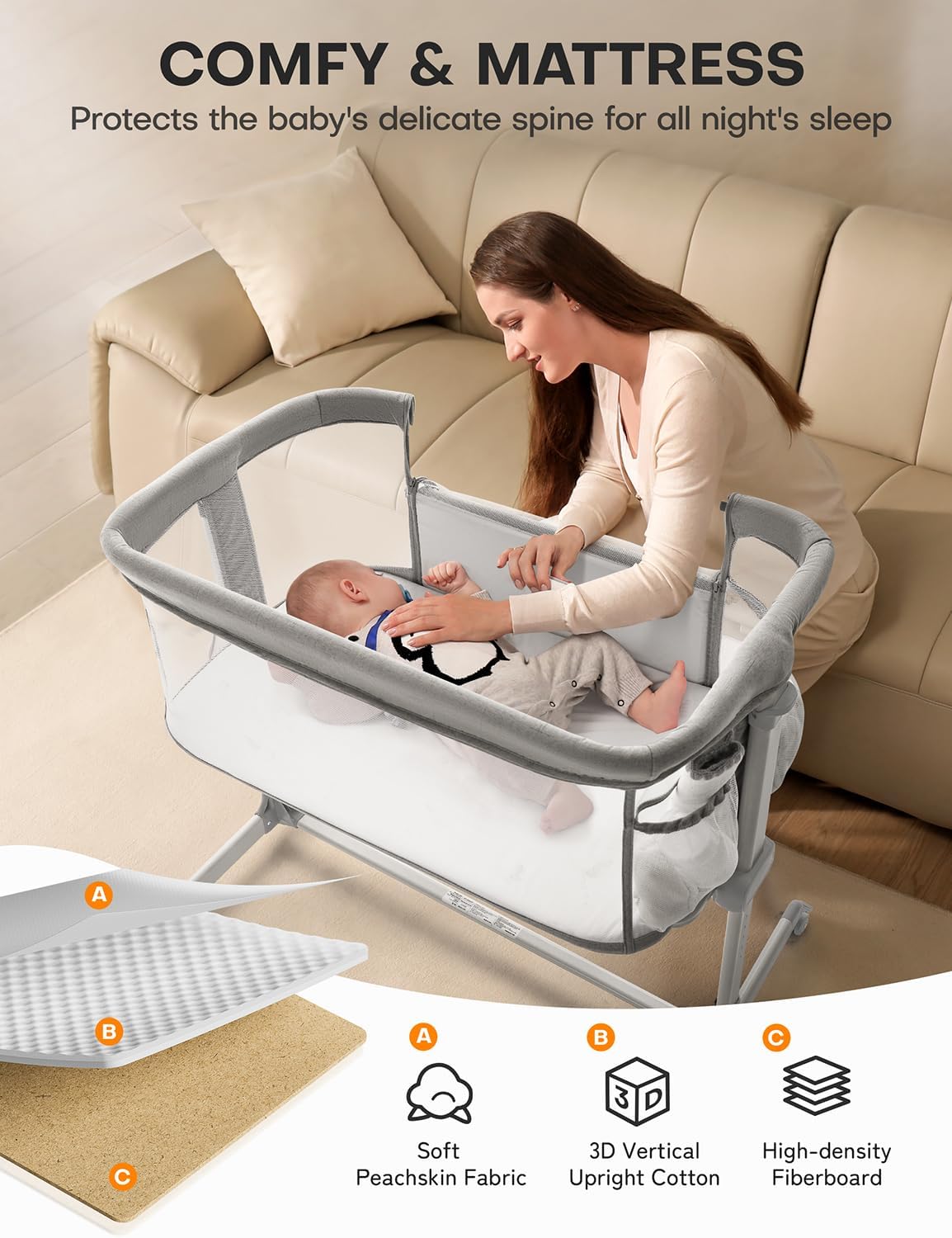 BDC07 Besrey Baby Bassinet, All Mesh, 7-Height Adjustable, with Pockets and Comfy Mattress