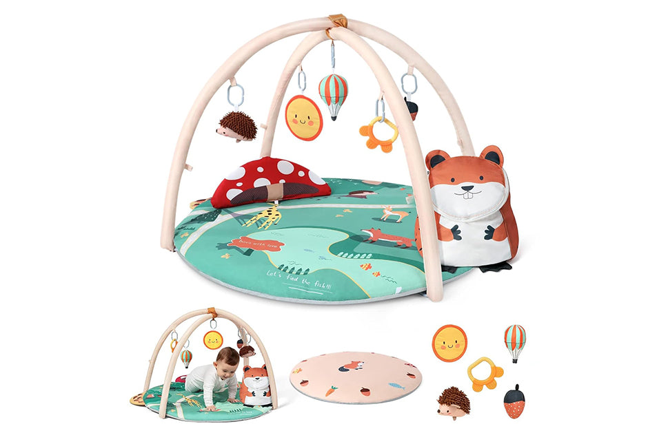 Besrey 7 in 1 Thicker Baby Play Mat, 5 Adventure Theme Developmental Toys Tummy Time Mat, 2 Replaceable Washable Mat Cover, Soft Pillow