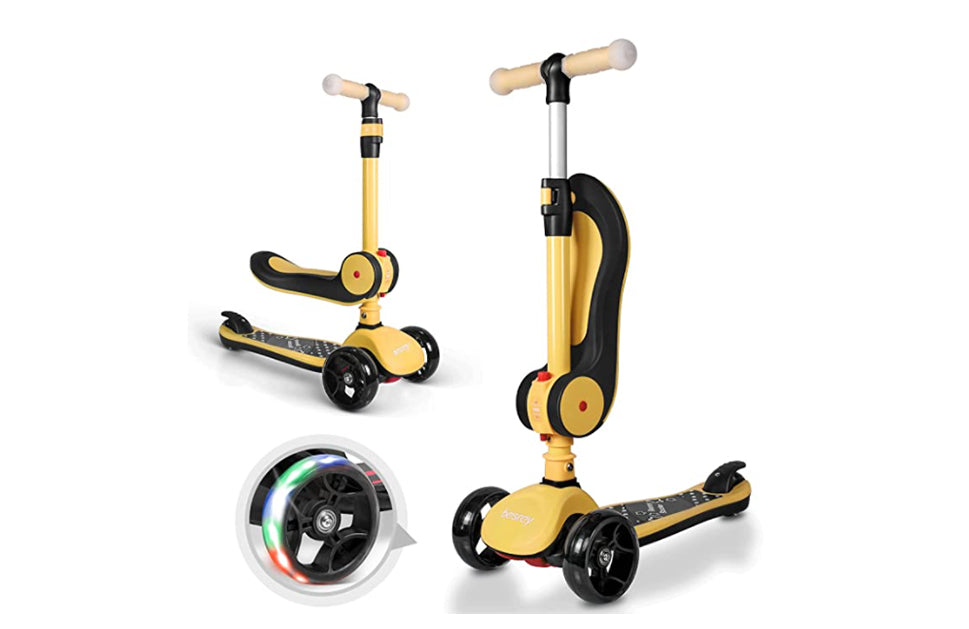 Besrey Multifunctional scooter for toddlers and children 3 Wheels Kick Scooter for Boys Girls with PU LED Flashing Wheels, Adjustable Height