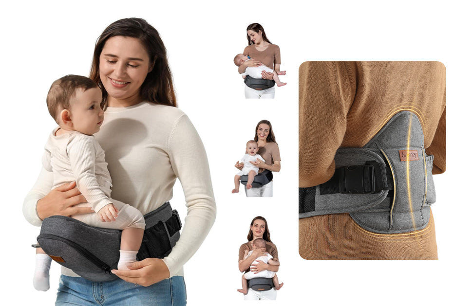 Besrey Baby Carrier with Hip Seat, Convertible Carrier, Ergonomic Comfort, Multiple Pockets and Machine washable