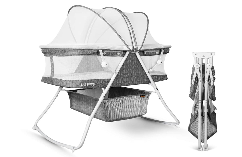 besrey Bassinet for Baby, 3 in 1 Portable Baby Bassinets, Rocking Cradle Bed, Easy Folding Bedside Sleeper Crib, Quick-Fold for Newborn Infant, up to 33 lb Compact Storage