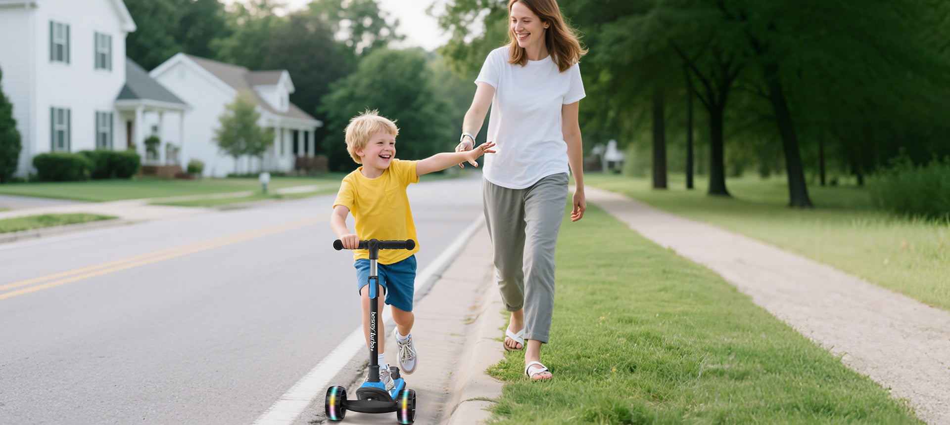 The Besrey scooter for 2yr old weighs just 6 pounds (2.8 kg) and folds up easily, so your child can carry it and enjoy outdoor adventures anytime, anywhere.